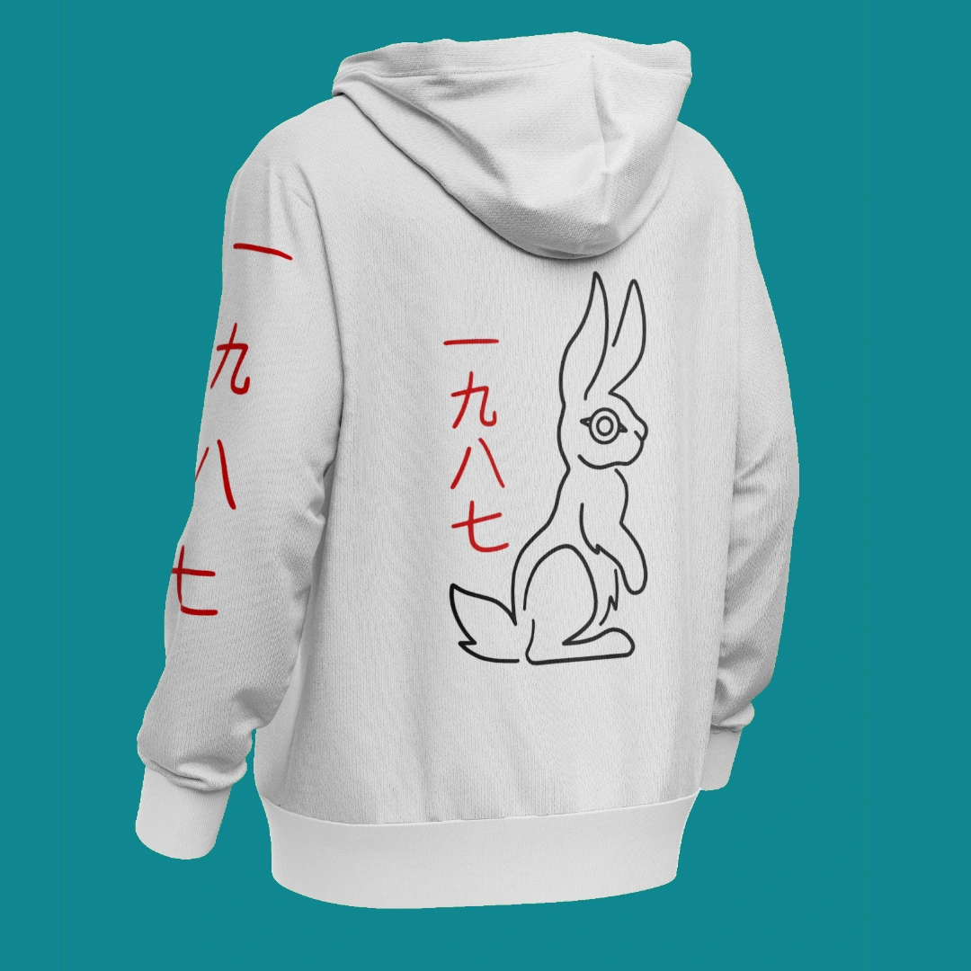 ¡Lleva tu signo con orgullo! Sudadera premium del signo Conejo, personalizada a mano con tu año de nacimiento en la manga.