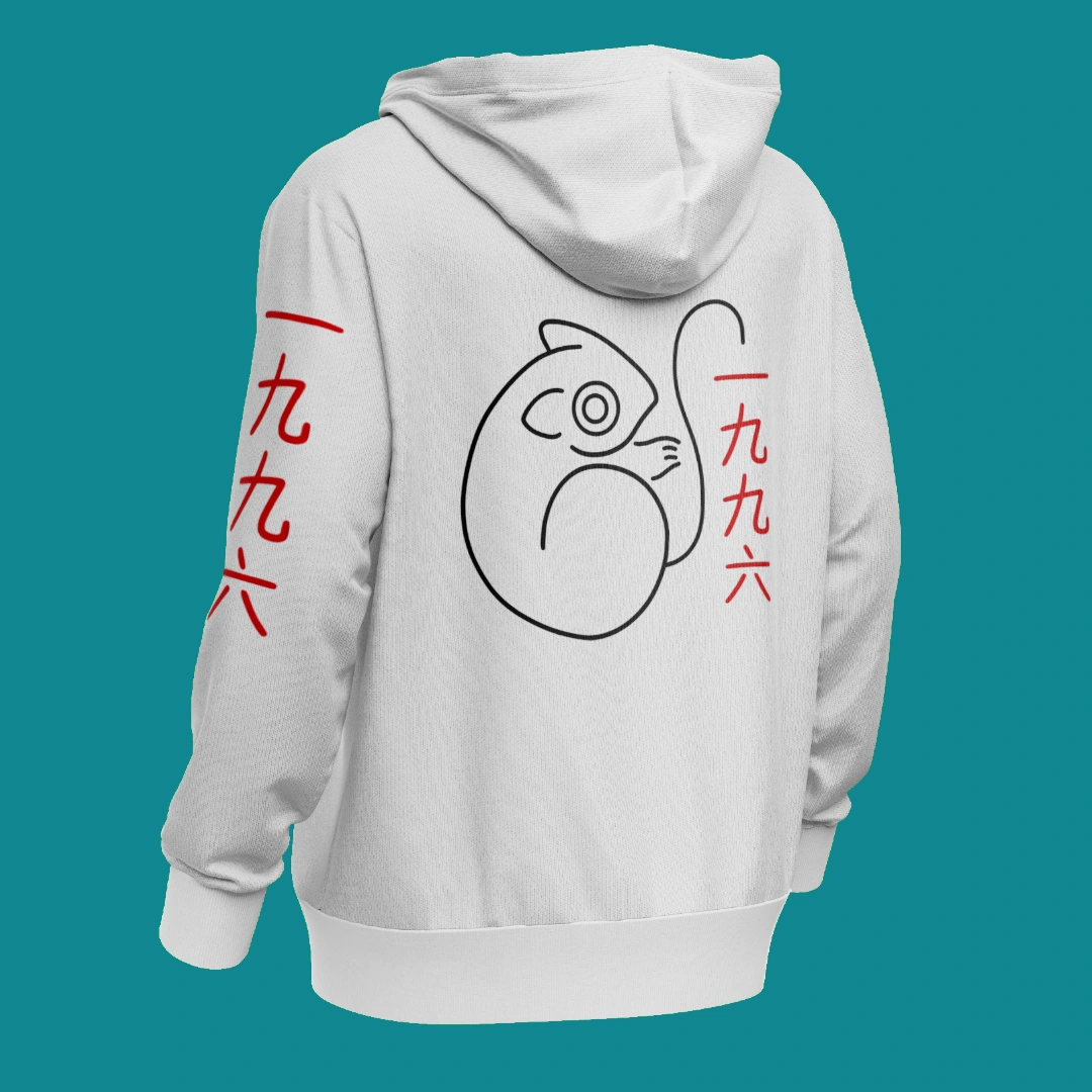 Una sudadera feral que se rayó con los 12 signos del zodiaco chino en la espalda, como si cada uno fuera una historia tatuada por el tiempo.